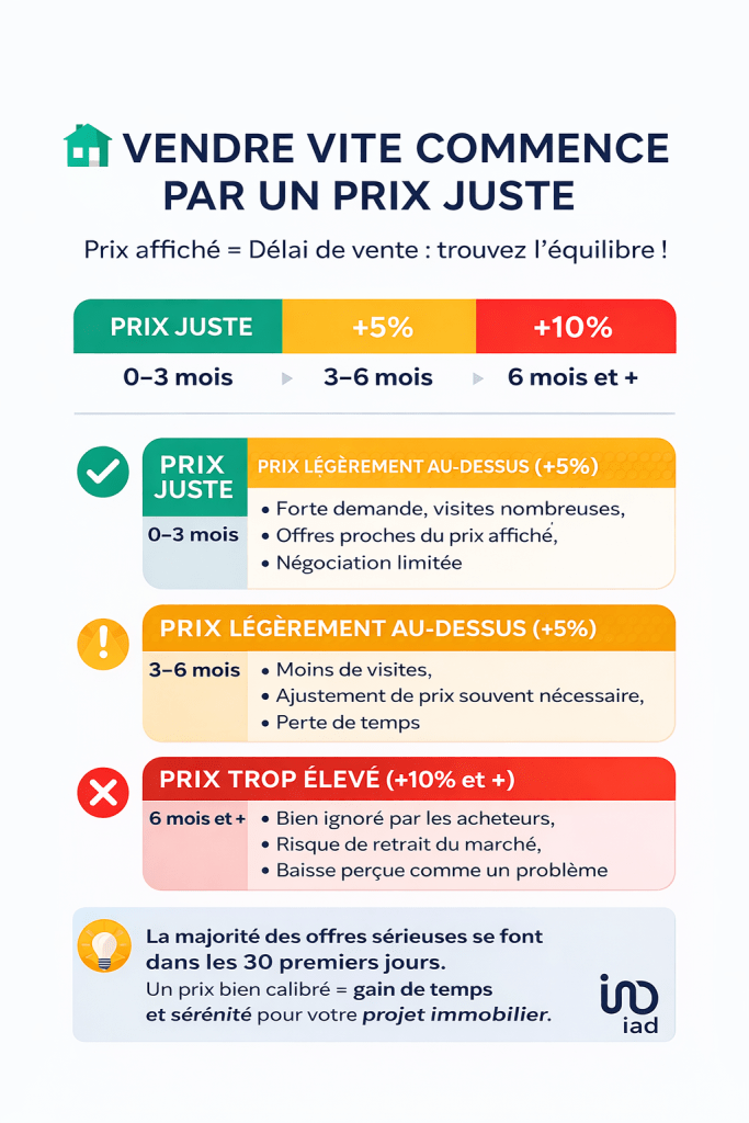 Si votre prix est cohérent avec le marché, vous recevrez des visites rapidement. Si votre prix est trop élevé, ces mêmes acheteurs passeront à côté de votre annonce ou la mettront de côté en attendant une baisse.